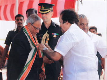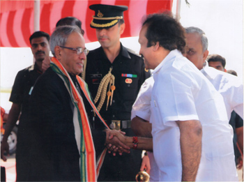 Receiving His Excellency The President of India Shri. Pranab Mukerjee on 7th August